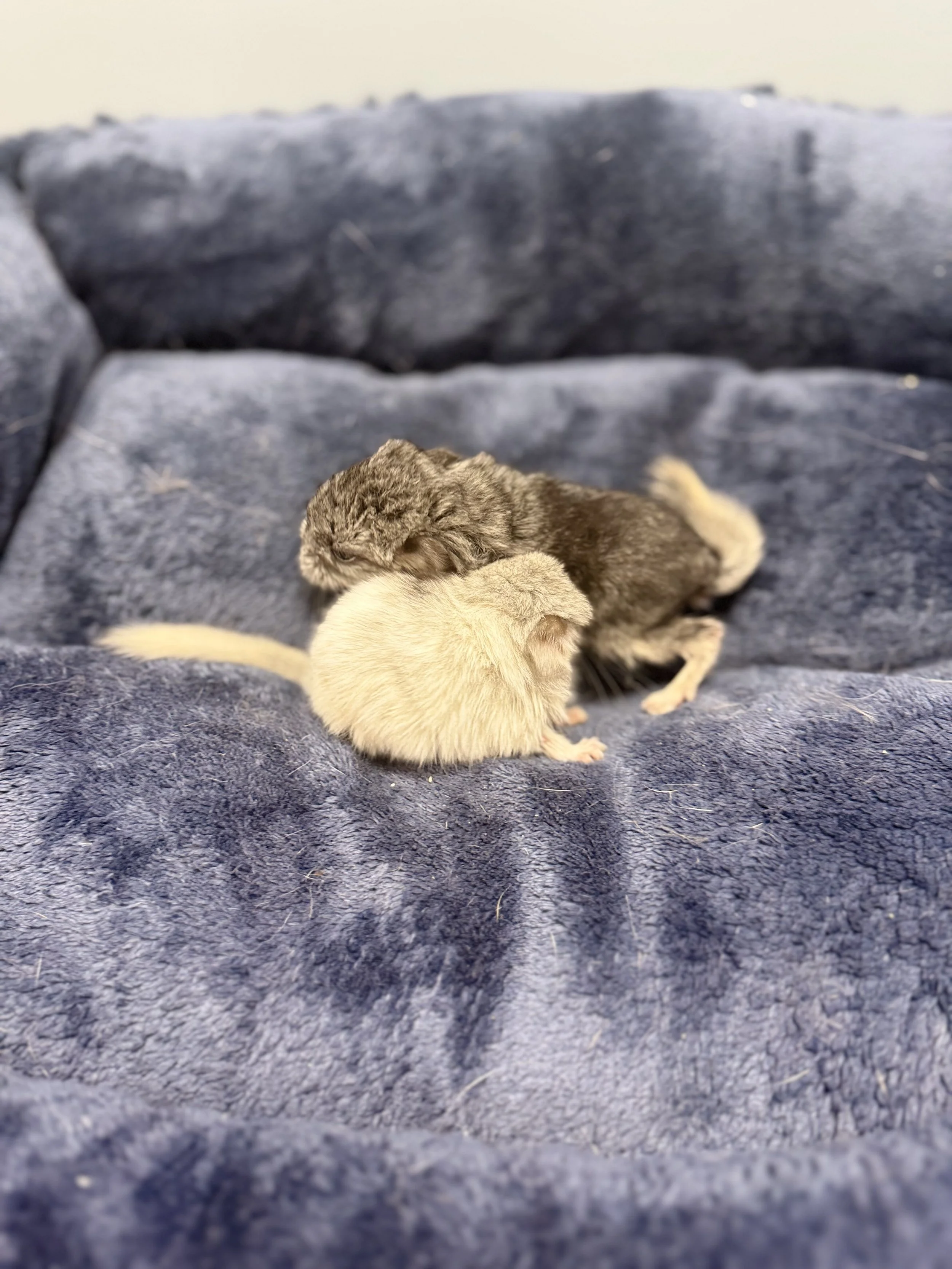 Two beautiful baby chinchillas were just born on March 3rd, and they are already stealing our hearts. These little ones are growing and thriving under our attentive care, and they will be available for new homes very soon!